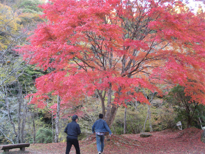 大きな紅葉もみじの木に興奮の男性陣