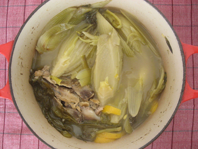 トリガラ丸ごととフェンネルちゃんとレモンのスライスを入れたスープ煮です。