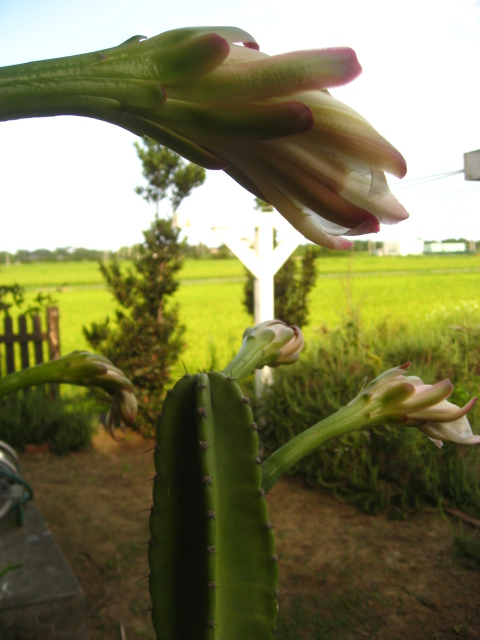 今日の夕暮れ、サボテンの4つ目のつぼみが大きくなりました。