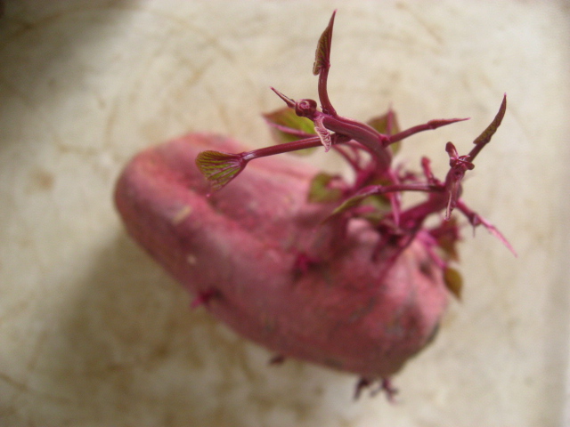 先日台所の掃除をしていたら、サツマイモの芽が出ていた!