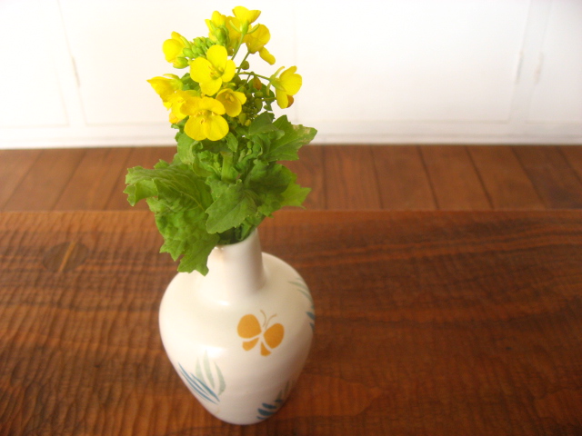 お歳暮の干物に入っていた菜の花が咲きました。