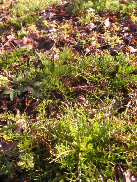 寒空の下、ジャーマンカモミールが青々しています。