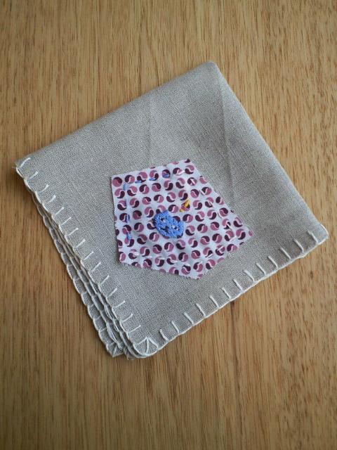 リネンのハンカチにワンポイント刺繍をするワークショップです。