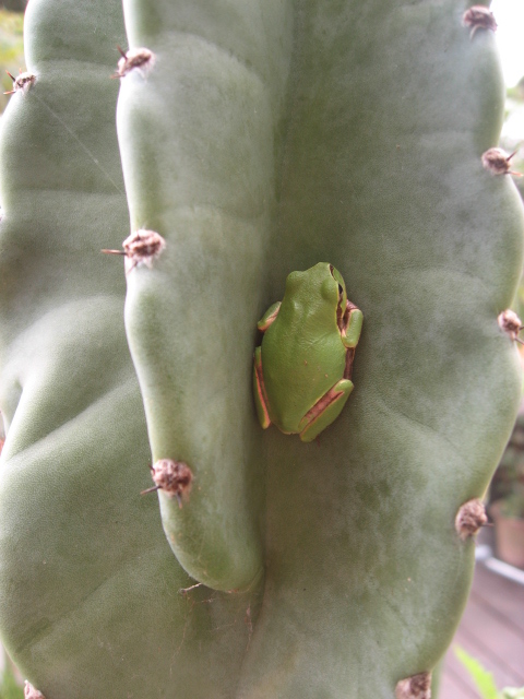 サボテンにたたずむカエルさん