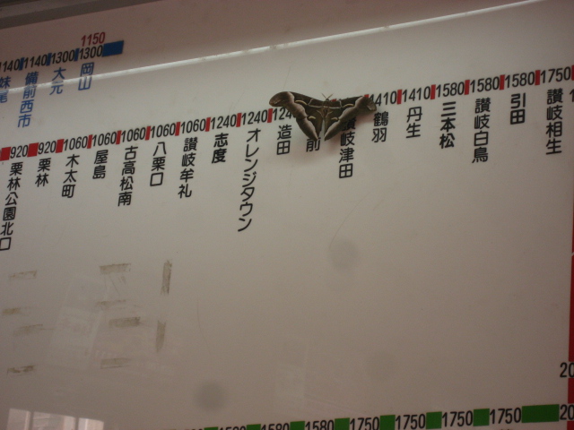 琴平駅の大きな蛾