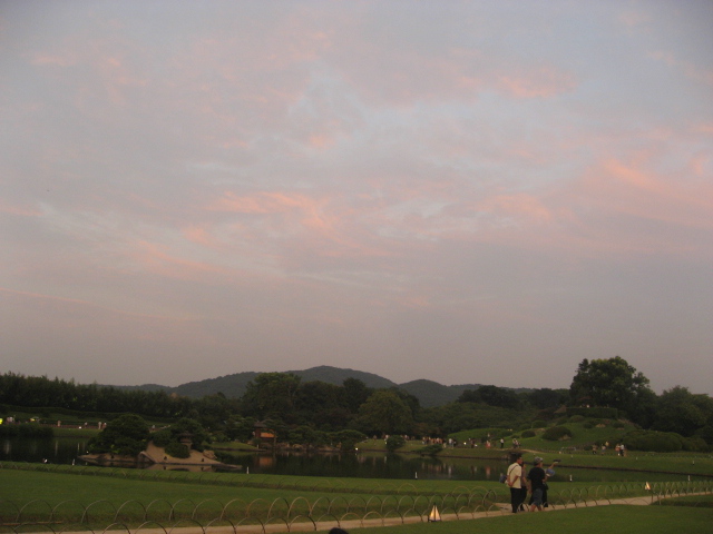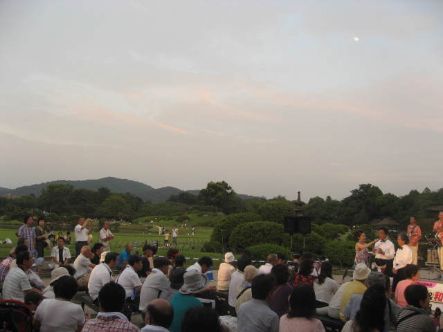 日が沈んで後楽園はライトアップされ、多くの人が後楽園を訪れていました。