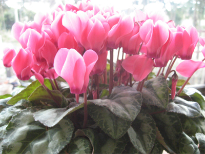 八重さんからいただいたシクラメン、今年も花つきがよくてとてもきれいに咲いてござる