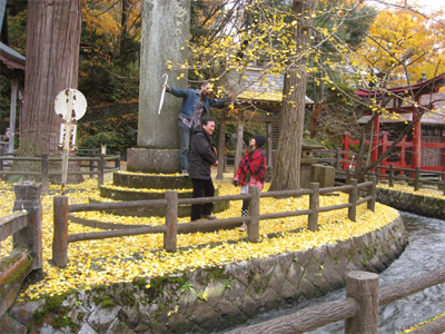 大きな紅葉もみじの木に興奮の男性陣