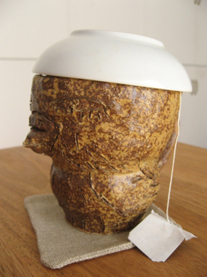 昔に作ったトリさんのコップに紅茶を入れ、お皿をフタにして蒸らしていたら