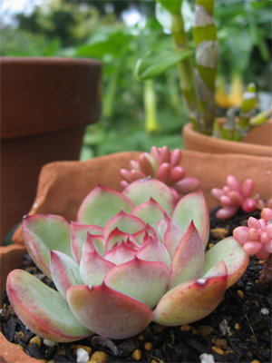 多肉植物たちも寒さで少し赤く色づいてきました